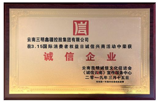 以诚信立业,为百姓谋福利,这是云南企业的特质!近日,在云南昆明诚信文化促进会第三届年度表彰大会暨“诚信兴商”高峰论坛上,云南三明鑫疆控股集团有限公司(以下简称“三明鑫疆”)凭借诚信兴商的企业作风荣获“诚信企业”荣誉称号。